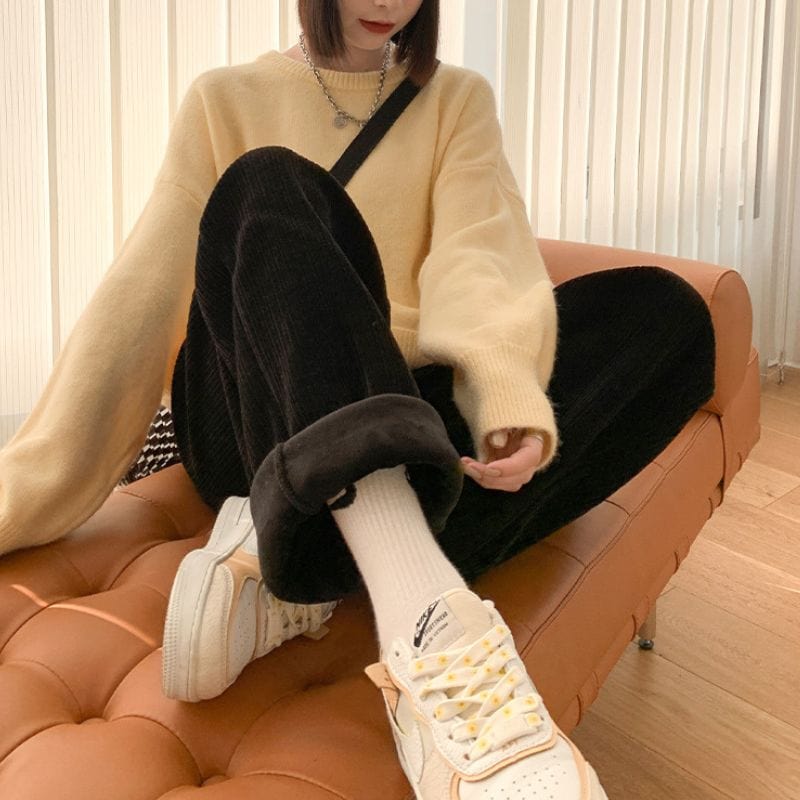 Pantalon Large Velours Cotelé Femme